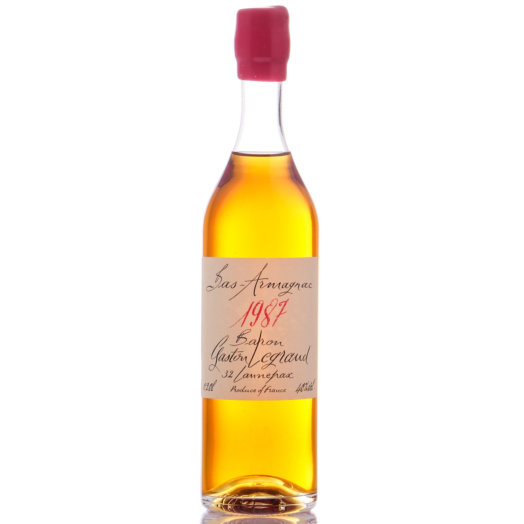 Dieser Armagnac wurde 1987 von Baron Gaston Legrand Bas Armagnac aus Baco und Ugni Blanc Trauben in Bas Armagnac, Frankreich hergestellt.